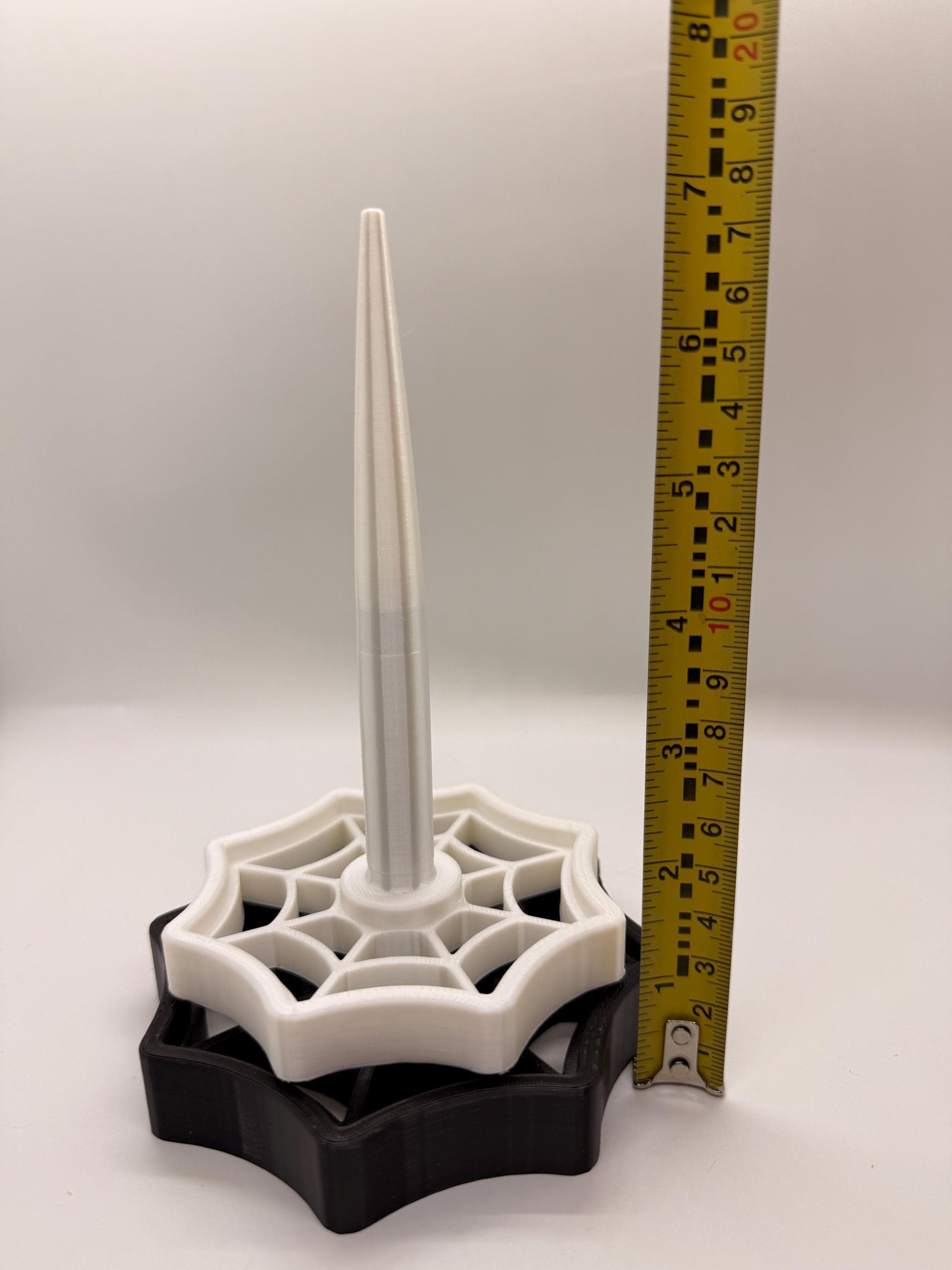 ∙ Two-piece set: decorative spiderweb spinner + weighted base included